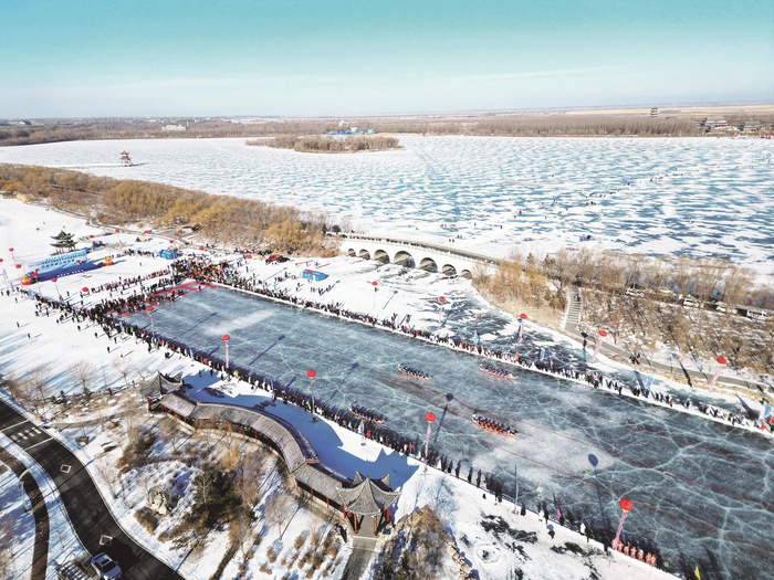 本报讯(记者尹雪)1月18日上午,大安嫩江湾嫩西湖冰面上热潮涌动。一场别开生面的冰上龙舟赛在此拉开帷幕,32支队伍、512名运动员齐聚冰面,用激情与协作点燃寒冬。
